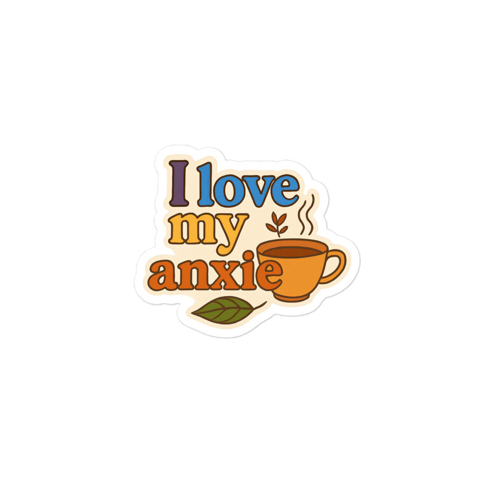 A warm cup of spiraling thoughts. The I Love My Anxie-Tea sticker is for the overthinkers, sensitive souls, and humor-as-a-coping-mechanism crowd. With retro rainbow lettering and a steaming tea cup, it turns anxiety into art—and gives your mental health a hug with a wink.