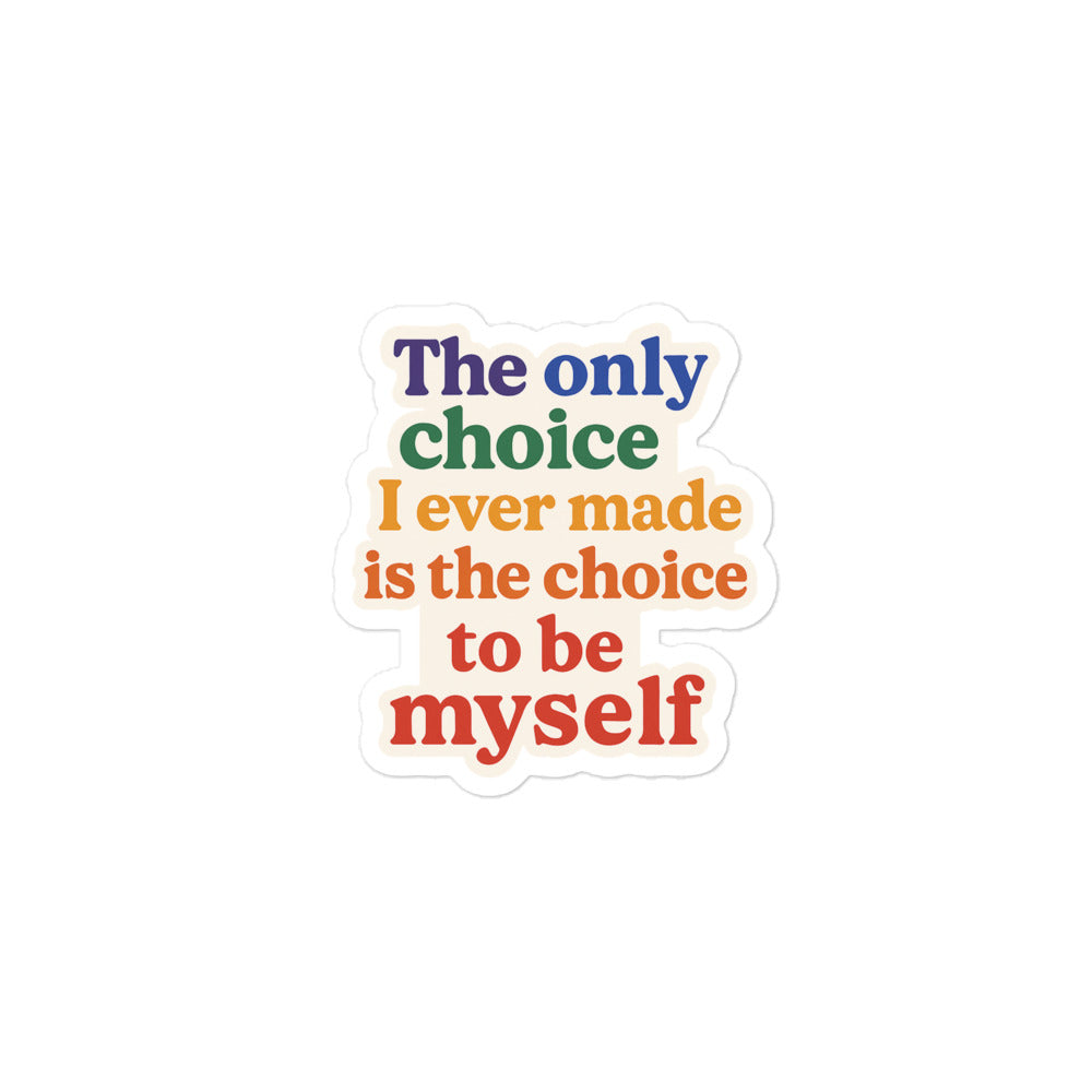 One decision. All heart. The Choice to Be Myself sticker is a full-spectrum affirmation for anyone who's ever stood in their truth, even when it wasn’t easy. Featuring a bold rainbow gradient and empowering type, this design is perfect for queer joy, identity pride, and everyday self-celebration.